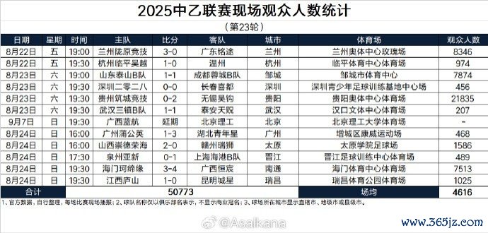 2025中乙职业联赛 现场观赛人群 人数统计(第23轮)(1场延期)