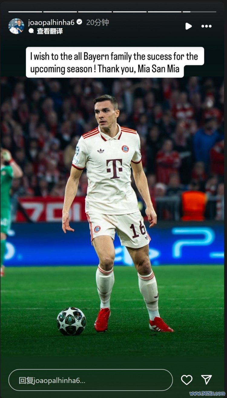 外租离队!帕利尼亚社媒:祝愿拜仁新赛季取得成功,谢谢大家
