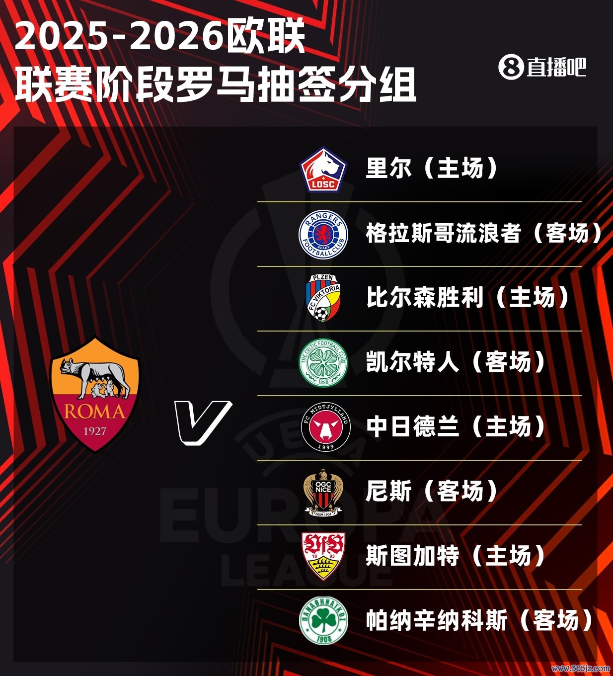 罗马欧联职业联赛 阶段对手:里尔、尼斯、斯图加特、凯尔特人等8队