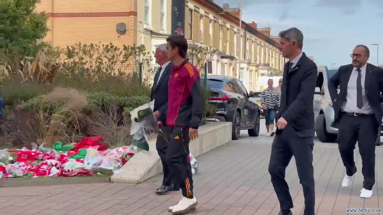 悼念逝者!迪巴拉、拉涅利、马萨拉代表罗马俱乐部向若塔献花