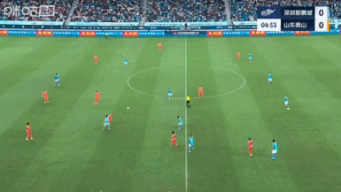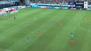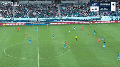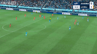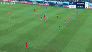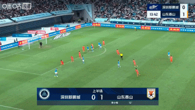 第12分钟,泰山反客为主!黄政宇中路直塞给到谢文能扣过防卫 球员后低射被守门员扑了一下后打在立柱上,乒乓球第二点李小恒补射破门, 意甲深圳新鹏城0-1山东泰山。↓