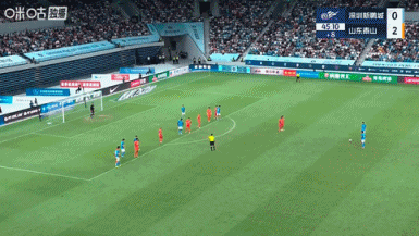 半场结束,深圳新鹏城0-2山东泰山。