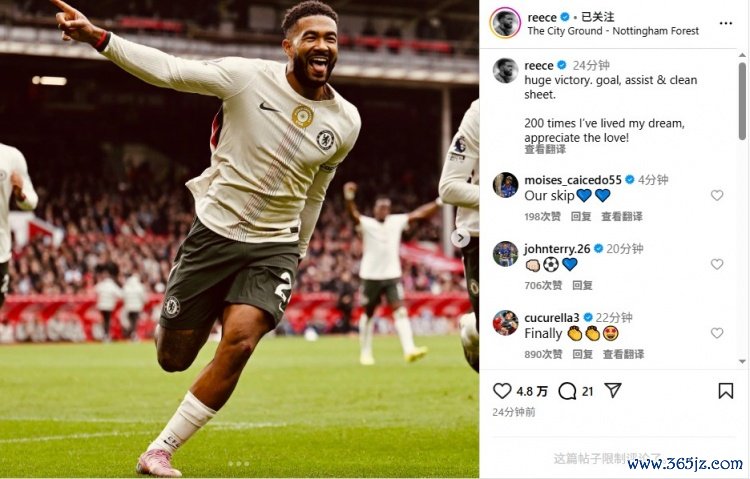 里斯-詹姆斯庆祝200场里程碑:200次实现我的理想 ,感谢大家的爱